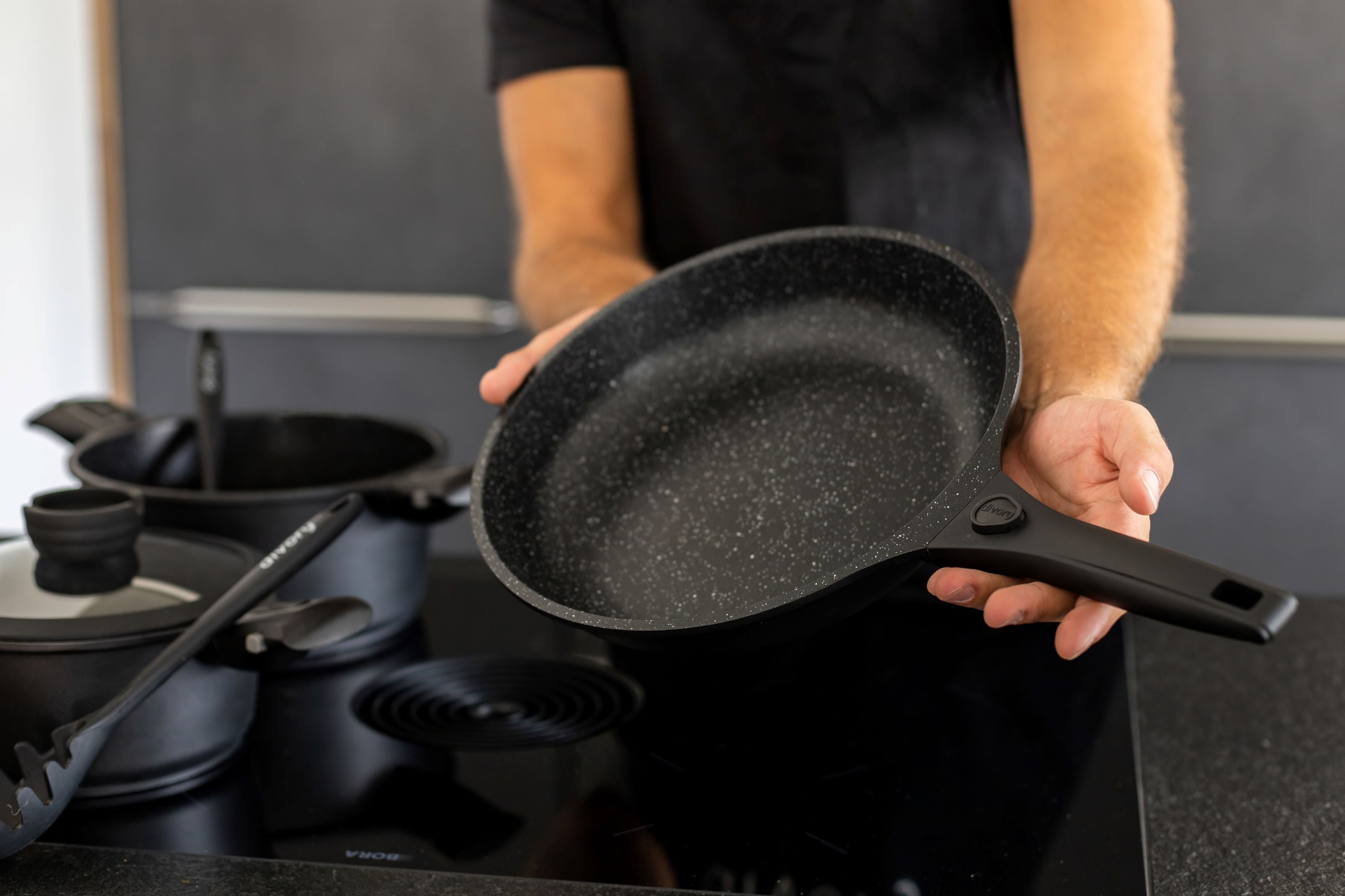 Unsere Ziele waren klar definiert: Eine Antihaftbeschichtung, in der nichts anbrennt, sogar ohne Öl, ein abnehmbarer Griff und schnelles Aufheizen mit gleichmäßiger Wärmeverteilung. Nach über einem Jahr intensiver Entwicklungsarbeit am Design und der Beschichtung war es Ende 2019 endlich geschafft! Das Ergebnis unserer unermüdlichen Anstrengungen ist die heutige Divory Pfanne. Sie besticht nicht nur durch ihren abnehmbaren Griff, sondern auch durch ihre exzellente Wärmeverteilung und die hochwertige deutsche Beschichtung. Mit der Divory Pfanne bist du für jedes kulinarische Abenteuer gerüstet.